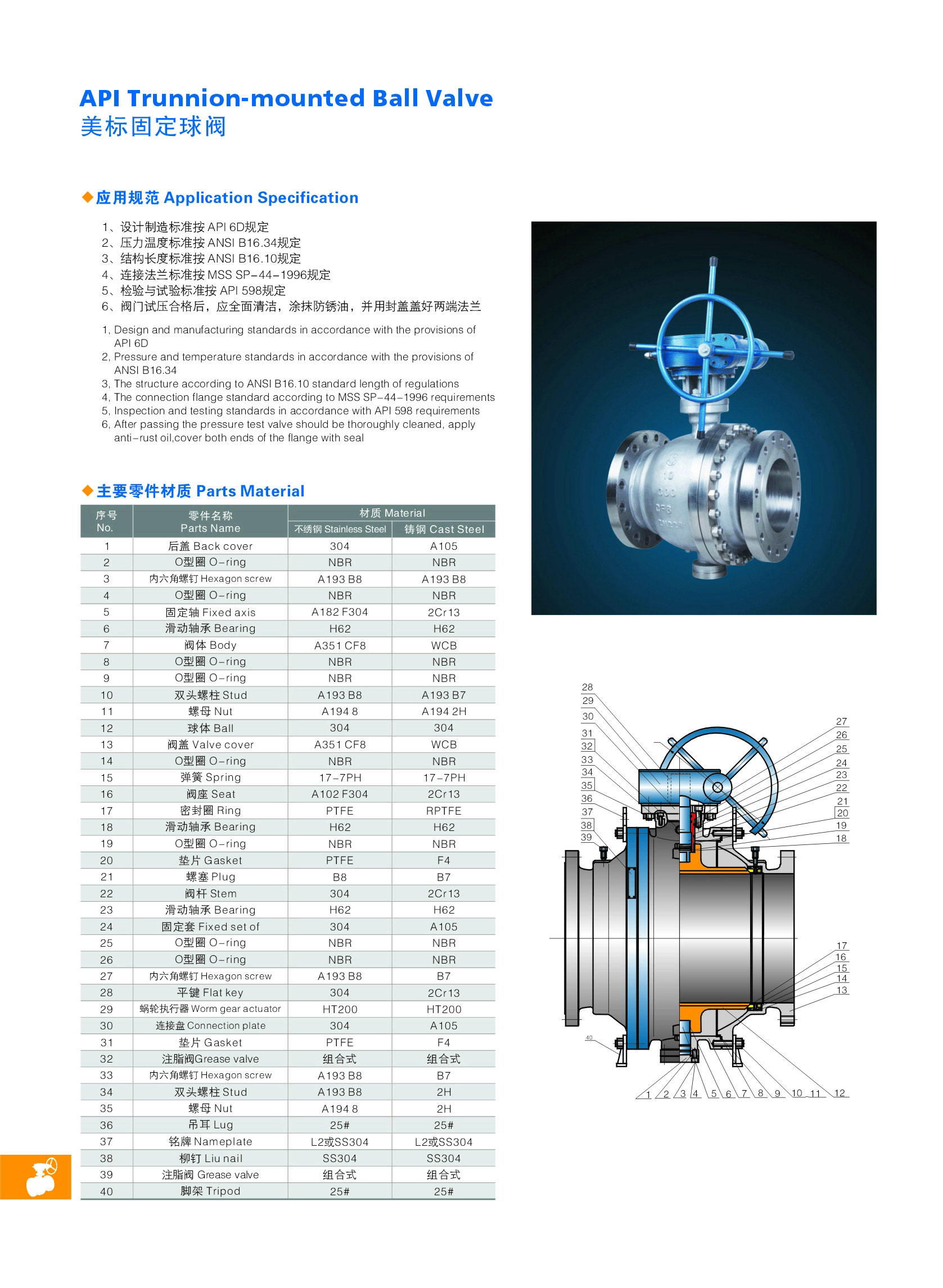 Q347Y-16/25C大口徑金屬硬密封固定式球閥是新一代高性能球閥,適用于長輸管線和一般工業(yè)管線,其強(qiáng)度、安全性、耐惡劣環(huán)境性等在設(shè)計(jì)時(shí)進(jìn)行了特殊考慮,適用于各種腐蝕性和非腐蝕性介質(zhì)。它與浮動球閥相比,工作時(shí),閥前流體壓力在球體上產(chǎn)生的作用力全部傳遞給軸承,不會使球體向閥座移動,因而閥座變形小,密封性能穩(wěn)定、使用壽命長,適用于高壓、大口徑場合。先進(jìn)的彈簧預(yù)閥座組件,具有自緊特性,實(shí)現(xiàn)上游密封。每閥有兩個(gè)閥座,每個(gè)方向都能密封因而安裝沒有流向限制,是雙向。本閥有二塊式和三塊式兩種閥體結(jié)構(gòu),中法蘭用螺栓連接,密封采用增強(qiáng)聚四氟乙烯鑲?cè)氩讳P鋼圈內(nèi),鋼圈后部設(shè)有彈簧保證閥座緊貼球體,保持密封。上下閥桿均設(shè)有PTFE軸承,減少磨擦,操作省力,小軸底部沒有調(diào)整片,保證球與密封圈的接處位置。采用全通徑的結(jié)構(gòu)使閥門流量孔么與管線內(nèi)徑一致,以便管線清掃。