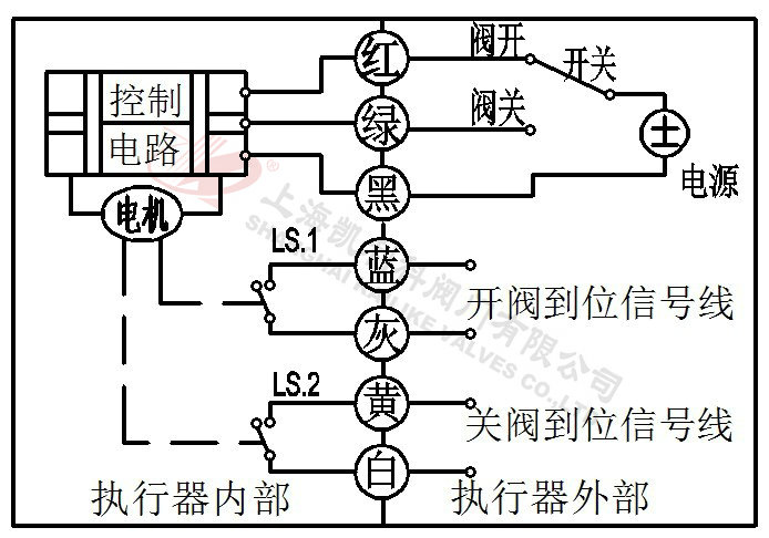 3、當(dāng)綠線開關(guān)斷開,閥門關(guān)閉,到位后執(zhí)行器內(nèi)部自動(dòng)斷電。