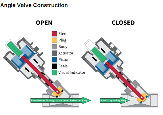 座椅角度的閥位置的閥2與內(nèi)置的氣動(dòng)執(zhí)行器。所述致動(dòng)器可以被返回彈簧作用或雙作用的。脫膜劑為插頭進(jìn)入閥角度坐在傾斜座椅模制到所述閥的流動(dòng)路徑。所述插頭被幾乎完全縮回時(shí)的流動(dòng)路徑打開。這一因素使座椅角度閥門的最高流量快速作用閥具有最低的壓降。在許多應(yīng)用中打開/關(guān)閉,閥座的閥角度的完美替代品。他們采取快、成本更低并且持續(xù)時(shí)間更長(zhǎng)。